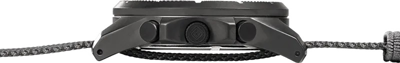 The Outpost Chrono provides precision timekeeping functionality with a tonal tactical appearance. 44mm stainless steel case (44mm) with an IP coating and mineral crystal face. The Outpost has a pull-crown for time adjustment and start/stop buttons for its stopwatch features. Hands and hour marks feature luminous material. Water resistant to 100M/330FT/10ATM. Removable 22mm webbing band.